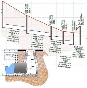El sistema interno del priyecto se dividió en tres etapas, la etapa uno considera el escurrimiento pluvial concentrado sobre las vialidades de la zona alta, revisando en todo momento que la capacidad de las vialidades para conducir el gasto de diseño.